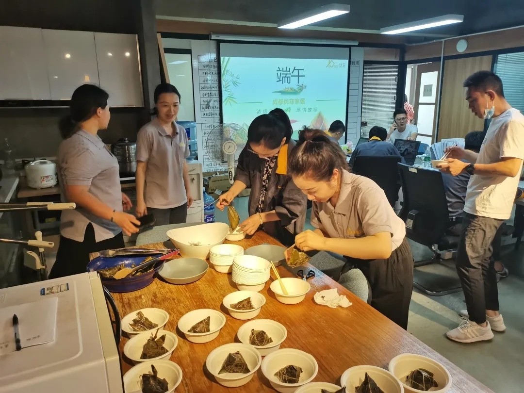 在線下,為確保更多的項(xiàng)目伙伴融入其中,優(yōu)菲家居成都分公司及各辦事處分別開展“煮粽子–一起吃”的主題活動(dòng)。